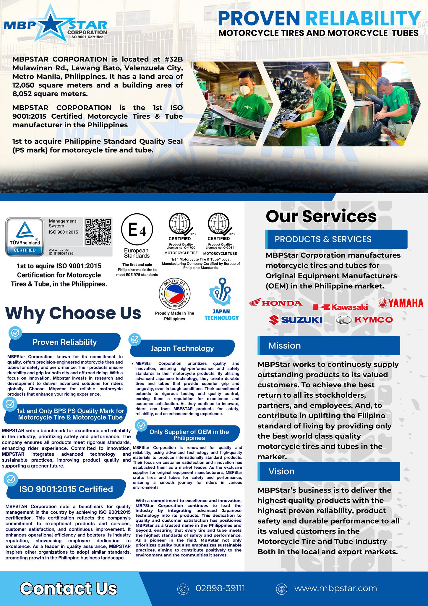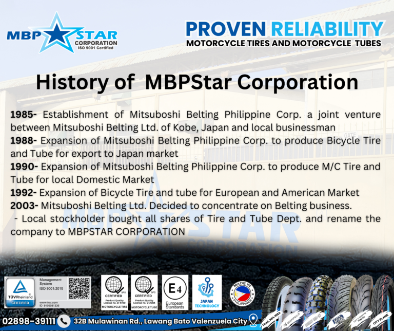We shall give emphasis to our objectives in terms of better-value quality and environmental friendly MBPStar tires and tubes, more productivity at less cost, safety, and time delivery.